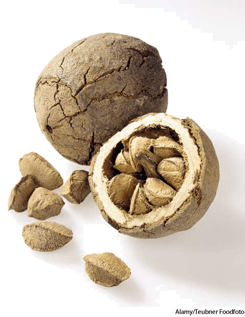 Brazil nutn.(名词) Brazil nutfruit capsule(background) and opened capsule (foreground) exposing hard-shelled seeds- A tropical South American evergreen tree(Bertholletia excelsa) having, globose, woody fruit and edible, dark brown, three-sided seeds. 巴西坚果树:一种南美洲(巴西果) 属常青树木,具有球形的木质果实和暗褐色的可食用的三角形种子