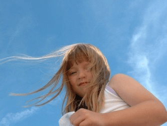 A girl's hair blows in the breeze.