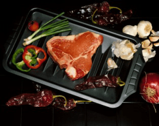 Meat and vegetables in a broiler ready to be broiled.