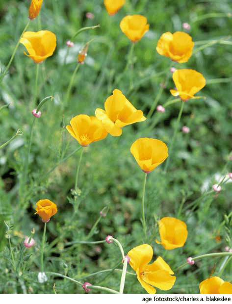 An herb(Eschscholzia californica) native to western North America and having finely divided leaves and showy, often orange or yellow flowers. 花菱草:一种生长于北美西部的草本植物(花菱草花菱草属) ,长有精致的裂叶以及艳丽的、多为橙色或黄色的花