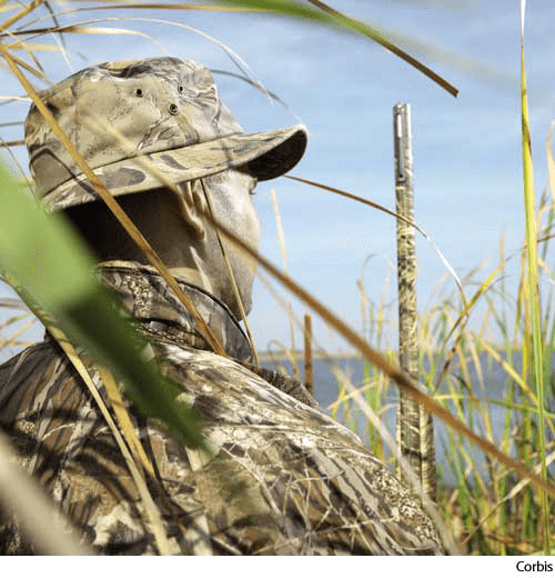 v.intr.(不及物动词)- To use protective coloring or garments for concealment.伪装:使用保护色或衣物来隐藏