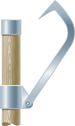 活动铁钩:一端附近有可移动金属钩的木制杠杆,用来搬运木头。类似尖头搬钩,但有一常带齿的钝顶