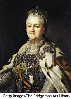 Catherine II 称作 “叶卡捷琳娜大帝”(1729-1796)NONE(无词性) Catherine IIdetail from a c. 1776 portraitby Alexander Roslin(1718-1793)- Empress of Russia (1762-1796) after her husband, Peter III (1728-1762), was deposed by a group led by her lover. She vastly increased the territory of the empire through conquest and three partitions of Poland.叶卡捷琳娜二世:在她丈夫彼得三世(1728-1762年)被由她情人领导的集团罢黜后登基的俄国女皇(1762-1796年)。通过征服和三次瓜分波兰而使帝国疆域得到极大的扩展
