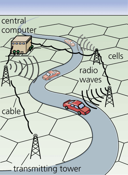 cellular telephonen.(名词) A call placed from a car is transmitted to a tower, forwarded via cable to a central computer, then to a telephone company, which directs the call to the person on the receiving end.Precision Graphics- A mobile radiotelephone, often in an automobile, that uses a network of short-range transmitters located in overlapping cells throughout a region, with calls automatically switched from one transmitter to the next as the caller enters an adjoining cell. A central station switches the calls and makes connections to regular telephone lines.蜂窝式移动电话:一种通常安装于汽车内的移动无线电话,使用遍布于某一地区的联网单位短程发射系统。当呼叫者接通一毗邻单位时,呼号将自动地从一个发射台转接到另一个。中心台接转呼号并将其与普通电话线路接通