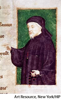 1. English poet regarded as the greatest literary figure of medieval England. His works includeThe Book of the Duchess (1369), Troilus and Criseyde (c. 1385), and his masterwork, The Canterbury Tales (1387-1400). 乔叟,杰弗里:(1340?-1400) 英国诗人,被认为是中世纪英国最伟大的文学家。他的作品包括《公爵夫人之书》 (1369年), 《特洛伊拉斯和克莱希斯》 (C.1385年)以及他的杰作 《坎特伯雷故事集》 (1387-1400年)