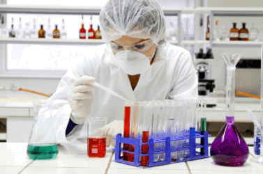 A chemist at work in her chemistry laboratory.