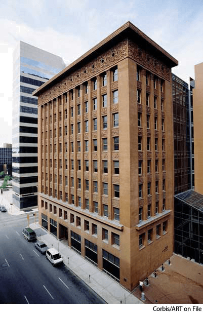 释义 Chicago Schooln.(名词)Chicago School1890-1891Wainwright Building, designed by Louis H. SullivanSt. Louis, Missouri