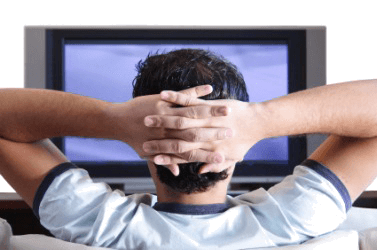 This man is going to chillax in front of the TV.