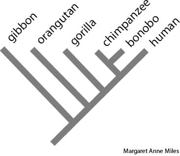 clad·o·gram AHD[klădʹə-grăm', klāʹdə-] D.J.[ˈklædəˌgræm, ˈkleɪdə-]K.K.[ˈklædəˌgræm, ˈkledə-]n.(名词) cladograma cladogram of the hominoids, showing that chimpanzees and gorillas are more closely rleated to humans than are orangutans and gibbons- A branching, treelike diagram in which the endpoints of the branches represent specific species of organisms. It is used to illustrate phylogenetic relationships and show points at which various species have diverged from common ancestral forms.进化分枝图:一种分叉的树状图,其分枝的终点代表生物的特定品种。其被用来说明种系发展的关系,并显示在何处不同的物种从同一远祖形式分化