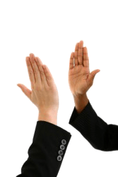 Two people about to clap their hands together.