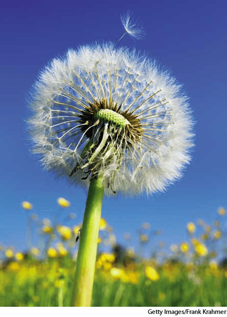 - Botany The downy flower head of a dandelion that has gone to seed.【植物学】 蒲公英的绒毛花:蒲公英的长茸的花头,吹散后可以播种