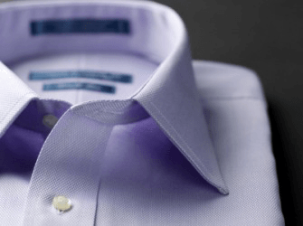 The collar of a mans shirt.