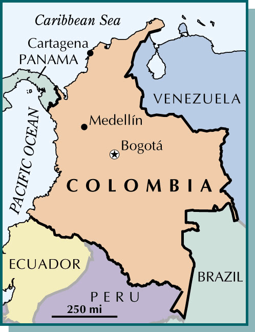 Co·lom·bi·a AHD[kə-lŭmʹbē-ə] abbr.缩写 Col.D.J.[kəˈlʌmbiːə]K.K.[kəˈlʌmbiə]NONE(无词性) - A country of northwest South America with coastlines on the Pacific Ocean and the Caribbean Sea. It was settled by the Spanish in 1510 and formed the nucleus of the viceroyalty of New Granada after 1740. Colombia gained its independence from Spain in 1819 under the leadership of Simón Bolivar. Bogotá is the capital and the largest city. Population, 26,525,670.哥伦比亚:南美西北部一国家,濒临太平洋和加勒比海。西班牙人于1510年在此定居,并于1740年后组成了新格拉纳达总督的辖地。1819年在西蒙·玻利瓦尔领导下,哥伦比亚从西班牙手中独立,波哥大为其首都并为其最大城市。人口26,525,670