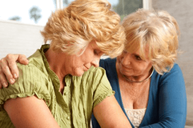 One woman comforts another.