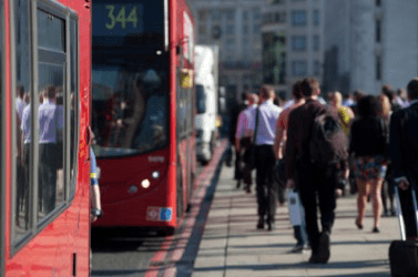 People taking the bus to commute to work.