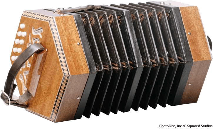 con·cer·ti·na AHD[kŏn'sər-tēʹnə] D.J.[ˌkɒnsəˈtiːnə]K.K.[ˌkɑnsɚˈtinə]n.Music(名词)【音乐】 concertina- A small, hexagonal accordion with bellows and with buttons for keys.六角手风琴:一种小的,带有风箱和按键的六角形乐器