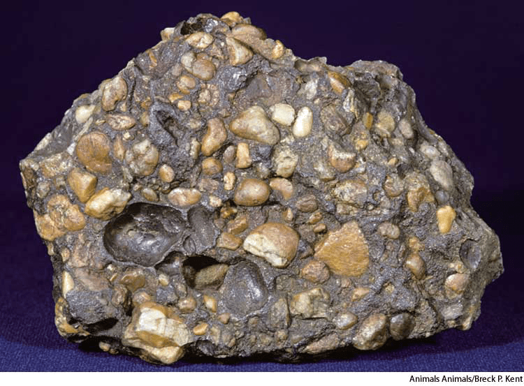 - Geology A rock consisting of pebbles and gravel embedded in cement.【地质学】 砾岩:由水泥固结的卵石和砾石形成的砾岩