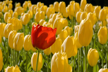 This red tulip is conspicuous.