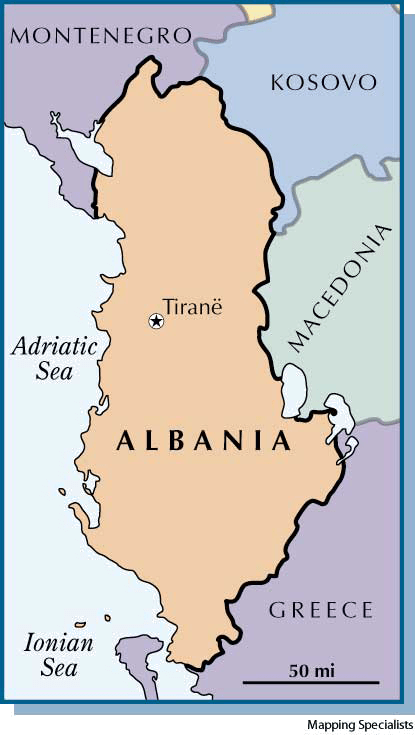 Al·ba·ni·a AHD[ăl-bāʹnē-ə, -bānʹyə, ôl-] abbr.缩写 Alb.D.J.[ælˈbeɪniːə, -ˈbeɪnjə, ɔːl-]K.K.[ælˈbeniə, -ˈbenjə, ɔl-]NONE(无词性) Albania- A country of southeast Europe on the Adriatic Sea. Long a warring ground for rulers and peoples ranging from the Romans and Turks to the Serbs and Bulgarians, Albania became a republic in 1925. Tiranë is the capital and the largest city. Population, 2,841,300.阿尔巴尼亚:欧洲东南部的一个国家,位于亚得里亚海。曾长期是各国统治者和民族(从罗马人、土耳其人到塞族人和保加利亚人)争战的场地,阿尔巴尼亚于1925年成为一个共和国。地拉那是首都及最大城市。人口2,841,300