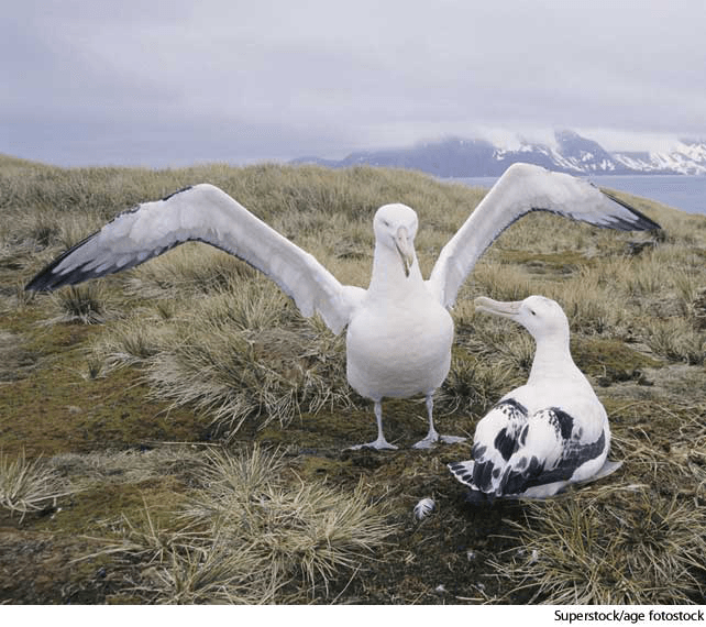 al·ba·tross AHD[ălʹbə-trôs', -trŏs'] D.J.[ˈælbəˌtrɔːs, -ˌtrɒs]K.K.[ˈælbəˌtrɔs, -ˌtrɑs]n.(名词)【复数】 albatross 或 al.ba.tross.es  albatrosswandering albatrosses Diomedea exulans- Any of several large, web-footed birds constituting the family Diomedeidae, chiefly of the oceans of the Southern Hemisphere, and having a hooked beak and long, narrow wings.信天翁:组成信天翁科的大型有脚蹼的鸟类,主要产于南半球海域,喙呈钩状,翅长而窄