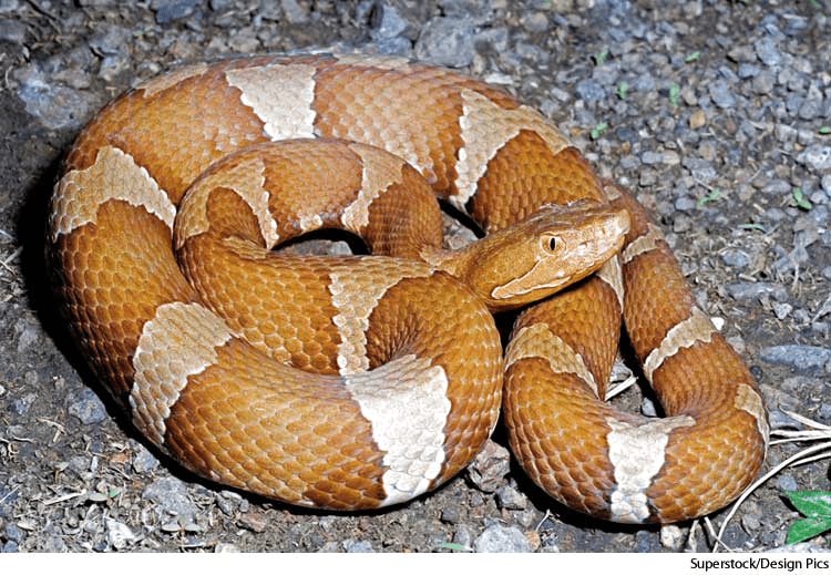 1. A venomous snake(Agkistrodon contortrix) of the eastern and central United States, having a reddish-brown body marked with darker crossbands arranged in an hourglass pattern. 铜头腹蛇:一种产于美国东部及中部地区的毒蛇(铜头蝮 蝮蛇属) ,身体呈红褐色,上面有沙漏形深色十字花纹