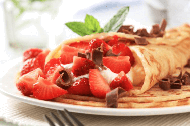 Crepes served with strawberries.