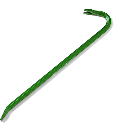 1. A straight bar of iron or steel, with the working end shaped like a chisel and often slightly bent and forked, used as a lever.撬棍:一种铁制或钢制的直棒,有楔形的工作端头,通常略微弯曲并成叉状,用作撬杆或杠杆