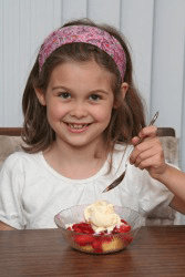 A little girl shows proper decorum.