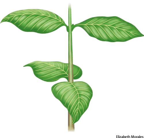 - Botany Arranged on a stem in opposite pairs at right angles to those above or below, resulting in four vertical rows:【植物学】 交互对生的:茎干上呈对生排列的,与上下的叶子呈直角,形成垂直的四行:decussate leaves.交互对生的树叶