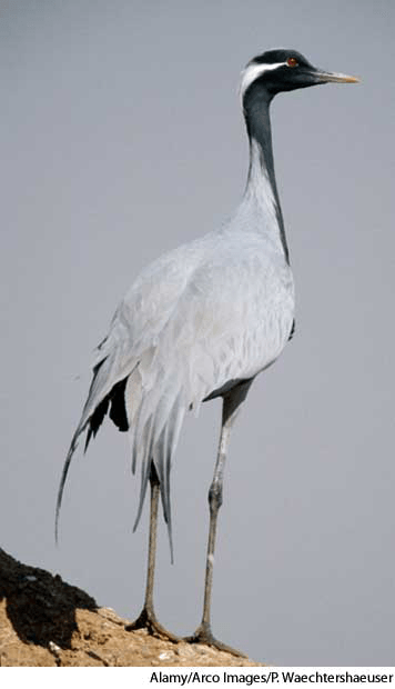 demoiselle cranen.(名词) demoiselle craneAnthropoides virgo- A small crane(Anthropoides virgo) of Asia, northern Africa, and Europe, having gray and black plumage, long black breast feathers, and white plumes at the side of the head. 蓑羽鹤:生长于亚洲、北非和欧洲的一种小鹤,(蓑羽鹤) ,羽毛灰黑色,腹部的羽毛长且黑,而头部的羽毛呈白色