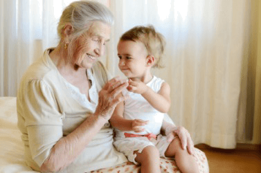 A great-grandmother with her descendant.