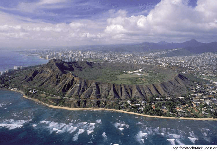 Di·a·mond Head AHD[dīʹə-mənd, dīʹmənd] D.J.[ˈdaɪəmənd, ˈdaɪmənd]K.K.[ˈdaɪəmənd, ˈdaɪmənd]NONE(无词性) Diamond Headaerial photographHonolulu, Hawaii- A promontory, 232.1 m (761 ft) high, on the southeast coast of Oahu, Hawaii.钻石海岬:在夏威夷瓦胡岛东南海岸上的232.1米(761英尺)高的海岬