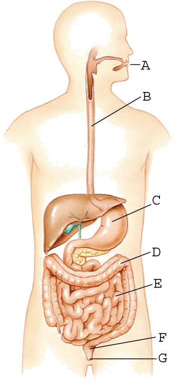 digestive systemn.(名词) A. mouthB. esophagusC. stomachD. large intestineE. small intestineF. rectumG. anusCarlyn Iverson- The alimentary canal and digestive glands regarded as an integrated system responsible for the ingestion, digestion, and absorption of food.消化系统:指消化道和消化腺,可作为同一系统负责食物的摄取、消化和吸收