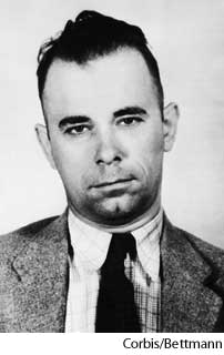 1. American gangster who was declared Public Enemy Number One by the F.B.I. in 1933 for his role in a string of bank robberies and at least three murders. He died in a gun battle with F.B.I. agents in front of the Biograph Theater in Chicago.狄林杰尔,约翰:(1902-1934) 1933年由于在一连串银行抢劫案和至少三起谋杀罪中的行为而被联邦调查局宣布为头号公敌的美国歹徒。他在芝加哥百高福戏院前面同美国联邦调查局的联邦特工的枪战中死亡