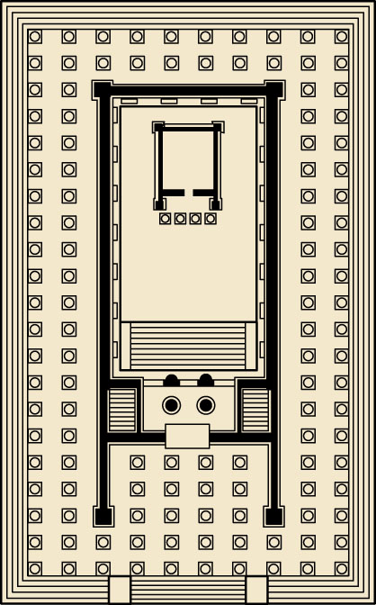 dip·ter·al AHD[dĭpʹtər-əl] D.J.[ˈdɪptərəl]K.K.[ˈdɪptərəl]adj.(形容词) after a plan of the Temple of Apollo at DidymaClarinda/Academy Artworks- Architecture Having a double row of columns on all sides, as certain Greek temples.【建筑学】 双排柱式的:如一些希腊神庙那种拥有两排廊柱的建筑物