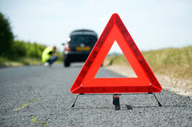This red triangle warns of a disabled car ahead.