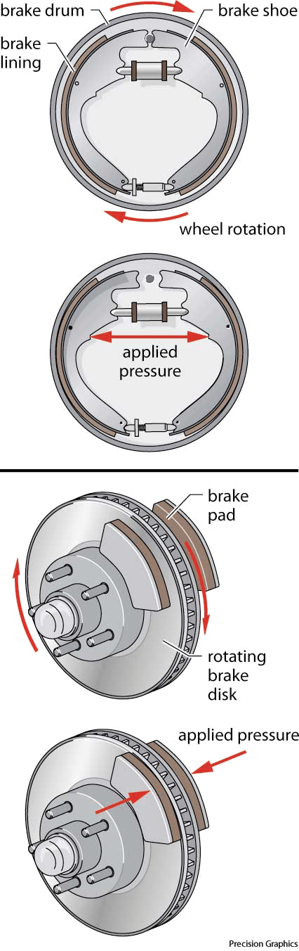盘式制动器:一种制动器,其摩擦由一排垫片压缩一转动的盘而产生