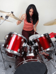 A woman playing the drums.