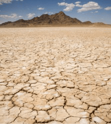 A dry, cracked river bed.