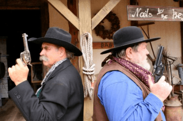Two men face off for a duel.