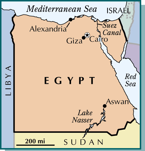 E·gypt AHD[ēʹjĭpt] Formerly (1958-1961年) United Ar.ab Republic[ărʹəb] D.J.[ˈiːdʒɪpt] Formerly (1958-1961) United Ar.ab Republic[ˈærəb]K.K.[ˈidʒɪpt] Formerly (1958-1961) United Ar.ab Republic[ˈærəb]NONE(无词性) - A country of northeast Africa on the Mediterranean Sea. In ancient times it was a flourishing kingdom and one of the earliest known civilizations, producing magnificent structures and delicate works of art. After the seventh centuryb.c. the kingdom declined, falling to various conquerors ranging from the Assyrians, Greeks, and Romans to the Turks, French, and British. It became an independent state in 1922. Cairo is the capital and the largest city. Population, 48,503,000. 埃及,阿拉伯埃及共和国:靠近地中海的东北非国家,在古代是盛极一时的王国,是已知的最早文明发源地之一。建造宏伟的建筑和精致的艺术品。公元前 7世纪后王国衰落,落入从亚述人、希腊人、罗马人到土耳其人、法国人和英国人的外族统治者手中。在1922年成为独立国家。开罗是其首都和最大城市。人口48,503,000