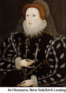 Elizabeth I(1533-1603)NONE(无词性) Elizabeth Iportrait painted c. 1580- Queen of England and Ireland (1558-1603) who succeeded the Catholic Mary I and reestablished Protestantism in England. Her reign was marked by several plots to overthrow her, the execution of Mary Queen of Scots (1587), the defeat of the Spanish Armada (1588), and domestic prosperity and literary achievement.伊丽莎白女王一世:英格兰及爱尔兰(1558-1603年)女王,继承女皇玛丽一世,并在英格兰重建了新教。她统治期间发生的重要事件有,几次试图推翻她的阴谋、处死苏格兰的玛丽女王(1587年)、击溃西班牙舰队(1588年)和国内繁荣与文学成就