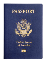 A U.S. passport emblazoned with a coat of arms.