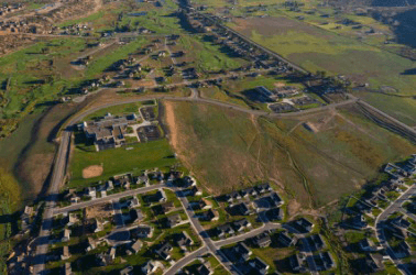 An urban area encroaching upon the rural landscape.