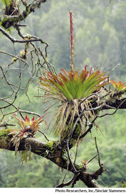 ep·i·phyte AHD[ĕpʹə-fīt'] D.J.[ˈepəˌfaɪt]K.K.[ˈɛpəˌfaɪt]n.(名词) epiphytean epiphytic bromeliad- A plant, such as a tropical orchid or a staghorn fern, that grows on another plant upon which it depends for mechanical support but not for nutrients. Also called aerophyte ,air plant 附生植物:一种生长于另一植物之上的植物,如热带兰或石松, 依靠另一植物支持生长而不以其获得养料 也作 aerophyte,air plant