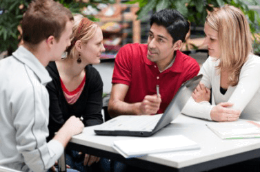 One student gives an explanation to his classmates.