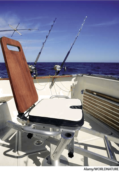 搏斗椅,钓鱼椅:装有垫子且配备马具的椅子,当捕获大鱼时支持海上钓鱼者而用于船上