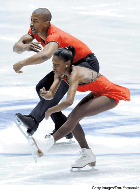 figure skat·ing AHD[skāʹtĭng] D.J.[ˈskeɪtɪŋ]K.K.[ˈsketɪŋ]n.Sports(名词)【体育运动】 figure skatingVanessa James (foreground) and Yannick Bonheur (background) of France at the 2009 ISU World Team Trophy figure skating team competitionTokyo, Japan- Ice skating in which the skater traces prescribed, usually elaborate figures.花样滑冰:滑冰者按指定的步伐表演的滑冰,通常指精心安排的式样