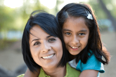 A child shows filial devotion to her mother.