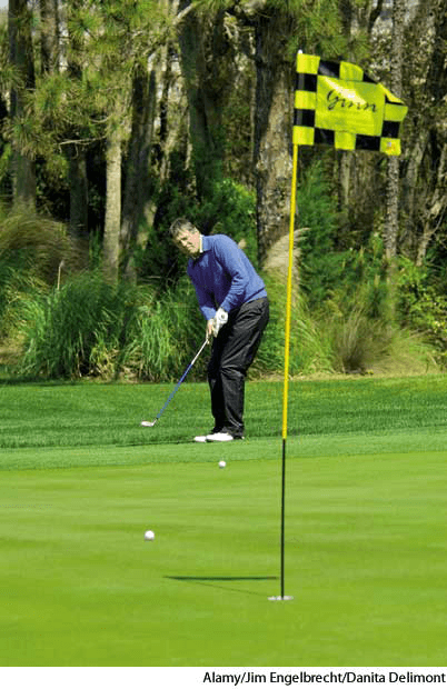 A removable pole with a numbered flag marking the placement of each hole on the putting greens of a golf course.